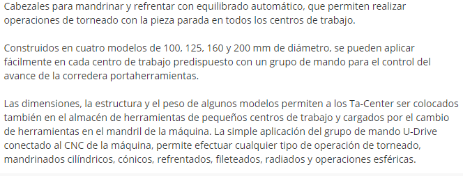 Un centro de trabajo así dispuesto permitirá resolver una serie de diferentes procesos como torneado interior y exterior, canales, mandrinado cónico también variable, radios convexos y cóncavos, roscas cilíndricas y cónicas, espirales fonográficas y procesado esférico.