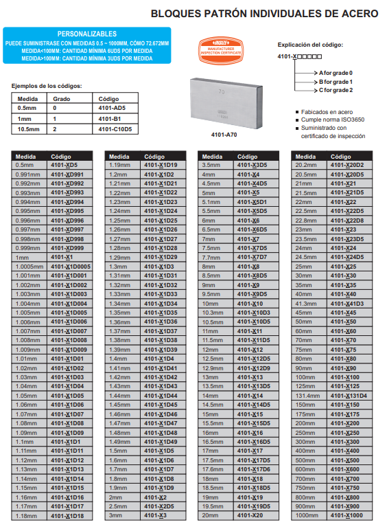 Las galgas que son calibres fijos no siempre indican su medición y pueden ser meras réplicas de la pieza modelo, lo cual las abarata, así algunas sirven solo para establecer un patrón, con el que se compara la pieza para establecer su validez; están formadas por un mango de sujeción y dos elementos de medida, donde una medida corresponde al valor máximo de la cota a medir.