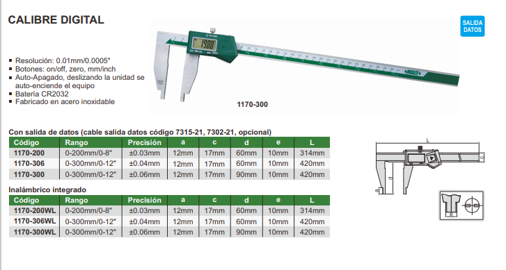 Los calibres digitales presentan distintas opciones como: presentar la medida en milímetros, en pulgadas, bloquear la medida, conexión USB, etc.