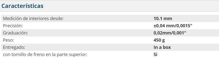 Su nonio superior Offset le permite realizar una lectura interior directa sin necesidad de añadir el espesor de sus bocas