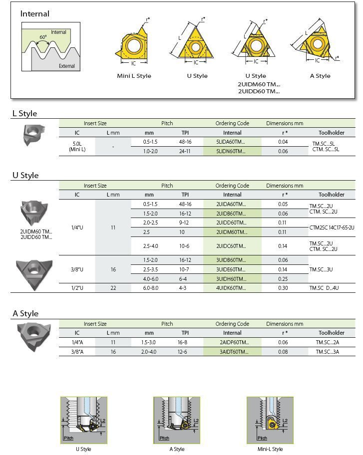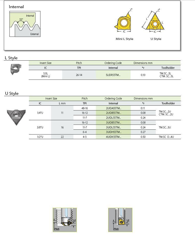 Herramienta de roscado para la fresadora de diferentes pasos, para roscar por interpolacion.