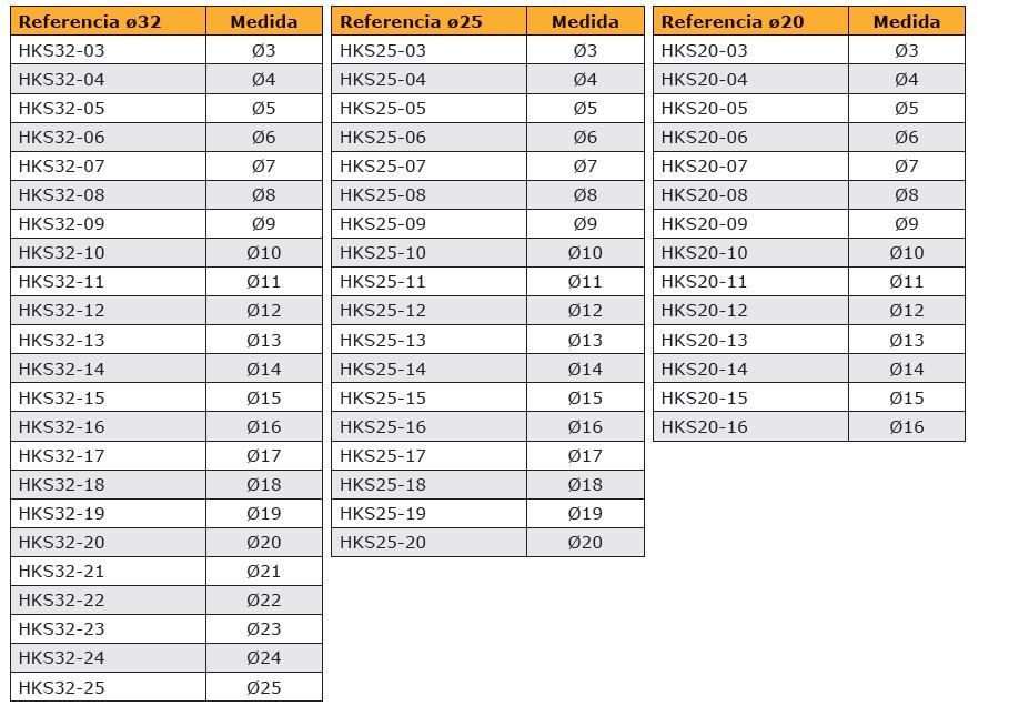 Dimensiones Longitud: HKS32 – 64 mm / HKS25 – 60 mm / HKS20 – 50 mm.