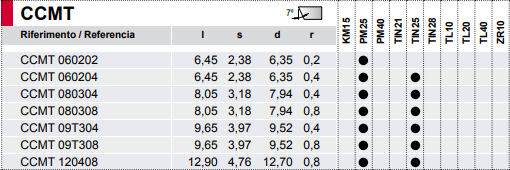 PLACA CCMT TORNEADO