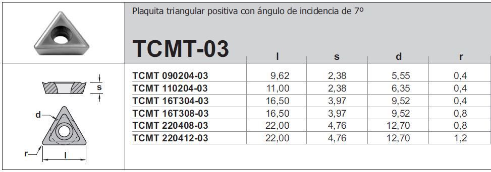 PLACA TCMT TORNEADO