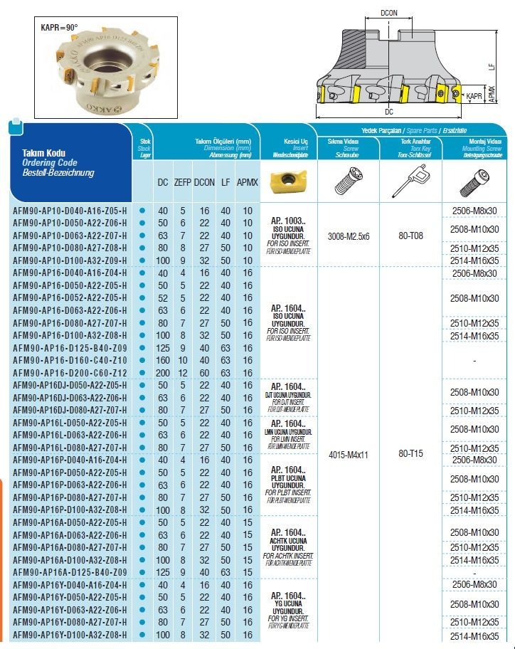 Fresa positiva multidiente para aplicaciones diversas con un ángulo exacto de 90º. Usa plaquitas muy robustas que permiten pasadas profundas y grandes avances por diente. Recomendada para fresadoras convencionales y centros de mecanizado.